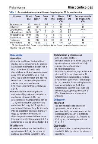 Tabla 1. Características farmacocinéticas de los principales GC de uso sistémico