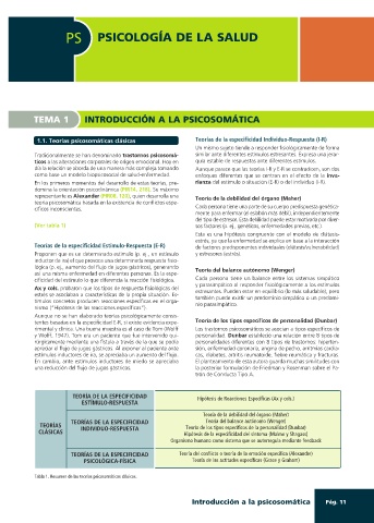 1.1. Teorías psicosomáticas clásicas Teorías de la especificidad Individuo-Respuesta (I-R)