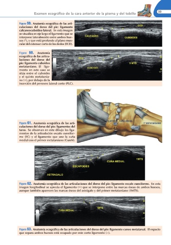 Figura 62. Anatomía ecográ ca de las articulaciones del dorso del pie: ligamento escafo cuneiforme. En esta