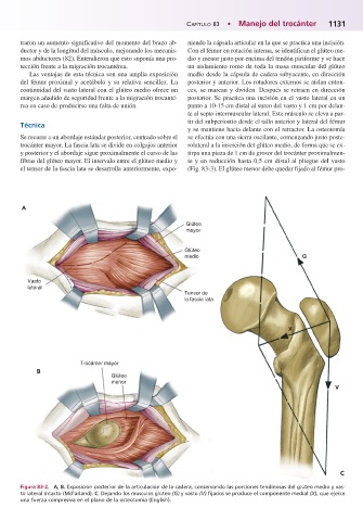 el tensor de la fascia lata se desarrolla anteriormente, expo- (Fig. 83-3). El glúteo menor debe quedar fijado al fémur pro-