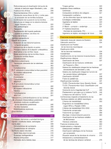 8 Injertos y sustitutos óseos 307 Abordaje e instrumentación posterior ...................................... 360