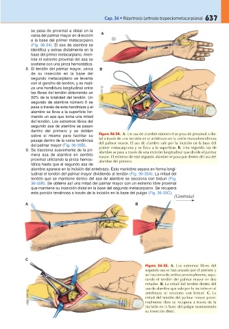 esta porción tendinosa a través de la incisión en la base del pulgar (Fig. 36-35C).