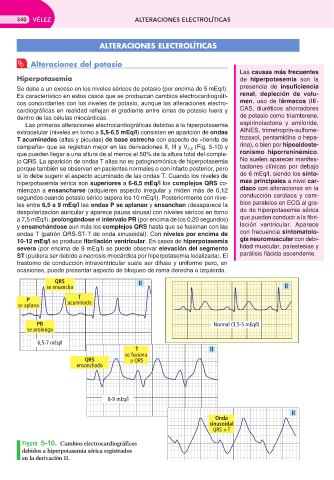 jo QRS. La aparición de ondas T altas no es patognomónica de hiperpotasemia No suelen aparecer manifes-