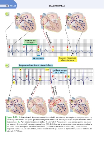 Figura 4-10. A. Paro sinusal. Fíjese en cómo el intervalo PP (use siempre un compás) es siempre constante y
