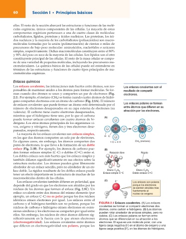 carbono y el hidrógeno también son no polares, porque los FIGURA 2.1 Enlaces covalentes. (A) Los enlaces rios iones inorgánicos, incluidos sodio (Na ), potasio (K ), magnesio (Mg ),
