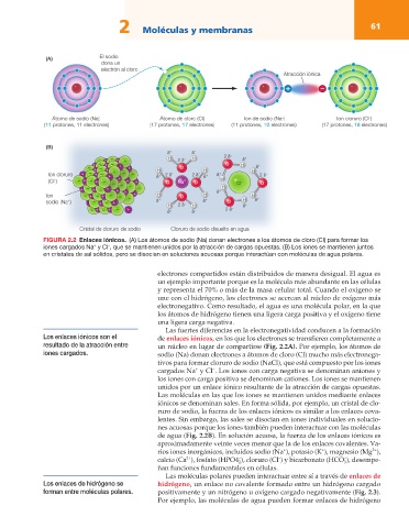 número de electrones desapareados en su capa externa de electrones (su entre átomos que difieren en su FIGURA 2.2 Enlaces iónicos. (A) Los átomos de sodio (Na) donan electrones a los átomos de cloro (Cl) para formar los
