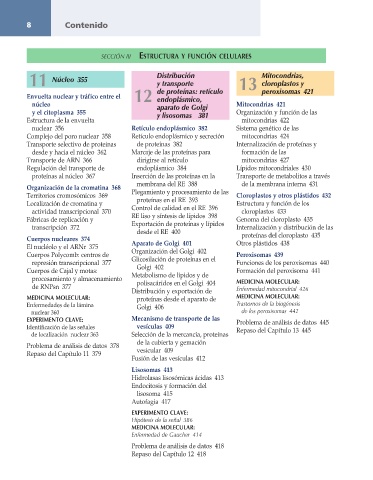 Localización de cromatina y proteínas en el RE 393 Estructura y función de los Miosinas no convencionales 464 Uniones de tipo gap 544