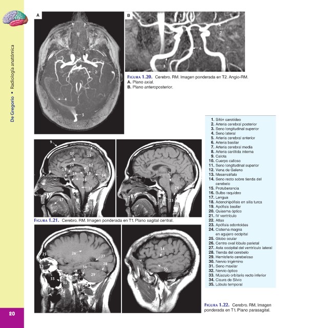Radiología anatómica 2 FIGURA 1.20. Cerebro. RM. Imagen ponderada en T2. Angio-RM.