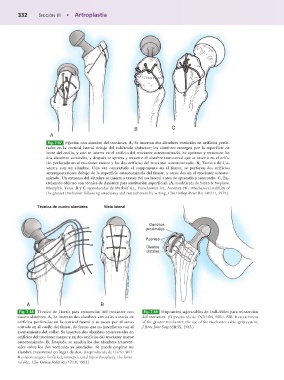 trelazado oblicuo con técnica de Amstutz para sustitución superficial. (A, modificada de Smith & Nephew,