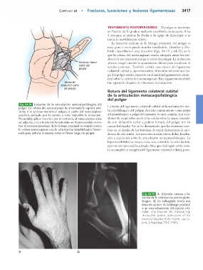 la cabeza metacarpiana con la articulación interfalángica f lexio- Rotura del ligamento colateral cubital