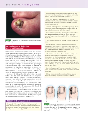 longitudinal en el eponiquio, prolongándola distalmente (fig. 84-8A), y la raíz ungueal. B, Extirpación de la placa ungueal, exponiendo