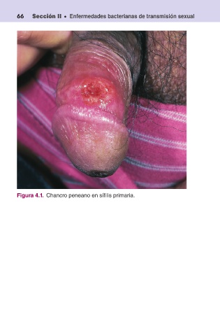 66 Sección II • Enfermedades bacterianas de transmisión sexual Figura 4.1. Chancro peneano en sífilis primaria. Libro_Handsfield_105x160_2021.indb 66 10/11/21 7:19