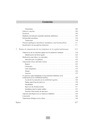 Tratamiento de los síntomas agudos de los trastornos lumbares . . . . . . . . . . . . . . . . . . . . . . . . 120