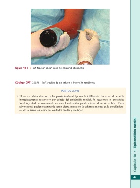 Figura 10-2 l Infiltración en un caso de epicondilitis medial