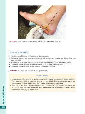 Figura 30-2 l Infiltración en un caso de fascitis plantar en el pie derecho