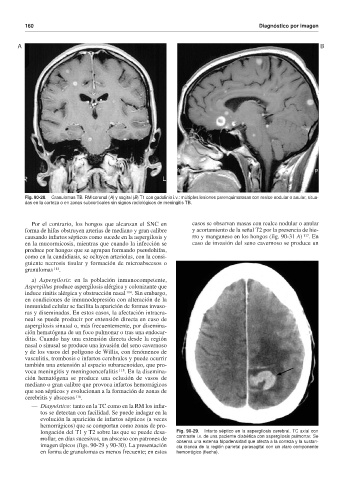longación del T1 y T2 sobre las que se puede desa- Fig. 90-29. Infarto séptico en la aspergilosis cerebral. TC axial con