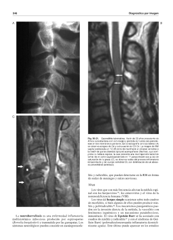 litis y radiculitis, que pueden detectarse en la RM en forma