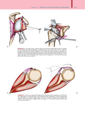 dón subescapular y la cápsula anterior. B: Se desinserta de la glenoides el colgajo capsulotendi-
