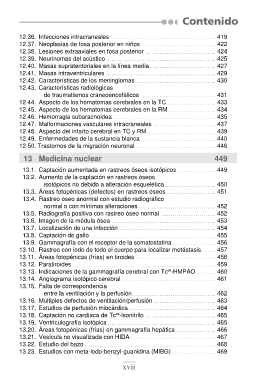 13.13. Indicaciones de la gammagrafía cerebral con Tc99-HMPAO . . . . . . . . . . 460