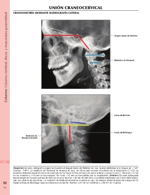 (normal Ͻ140°). La medición de Ranawat se muestra en azul, se utiliza para evaluar el colapso en la articulación C1-C2. La