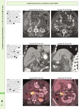 Localizaciones gastrointestinales: Carcinoma de la ampolla de Vater (Izda.) La TC axial + C en una Estadio IB (T2 N0 M0) Estadio IB (T2 N0 M0)