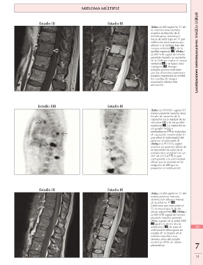 Estadio III MIELOMA MÚLTIPLE (Izda.) La RM sagital en T1 de Localizaciones osteomusculares: Mieloma múltiple