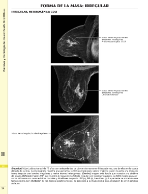 de lavado. (Inferior) Imagen MIP que muestra la masa de morfología irregular con bordes irregulares. La BAG mostró un carci-