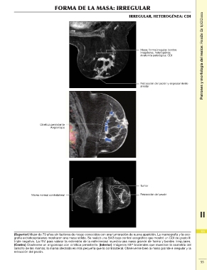 (Superior) Mujer de 79 años sin factores de riesgo conocidos con una tumoración de nueva aparición. La mamografía y la eco- 123