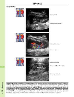 pelvicalicial. Compare con las imágenes del riñón doble y obsérvese que el parénquima renal no se interpone por com