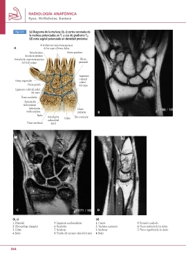 Fig. 7.11 (a) Diagrama de la muñeca; (b, c) cortes coronales de