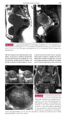 Fig. 12-19 A: Imagen ponderada en T1 y B: imagen ponderada en T2 con supresión grasa.